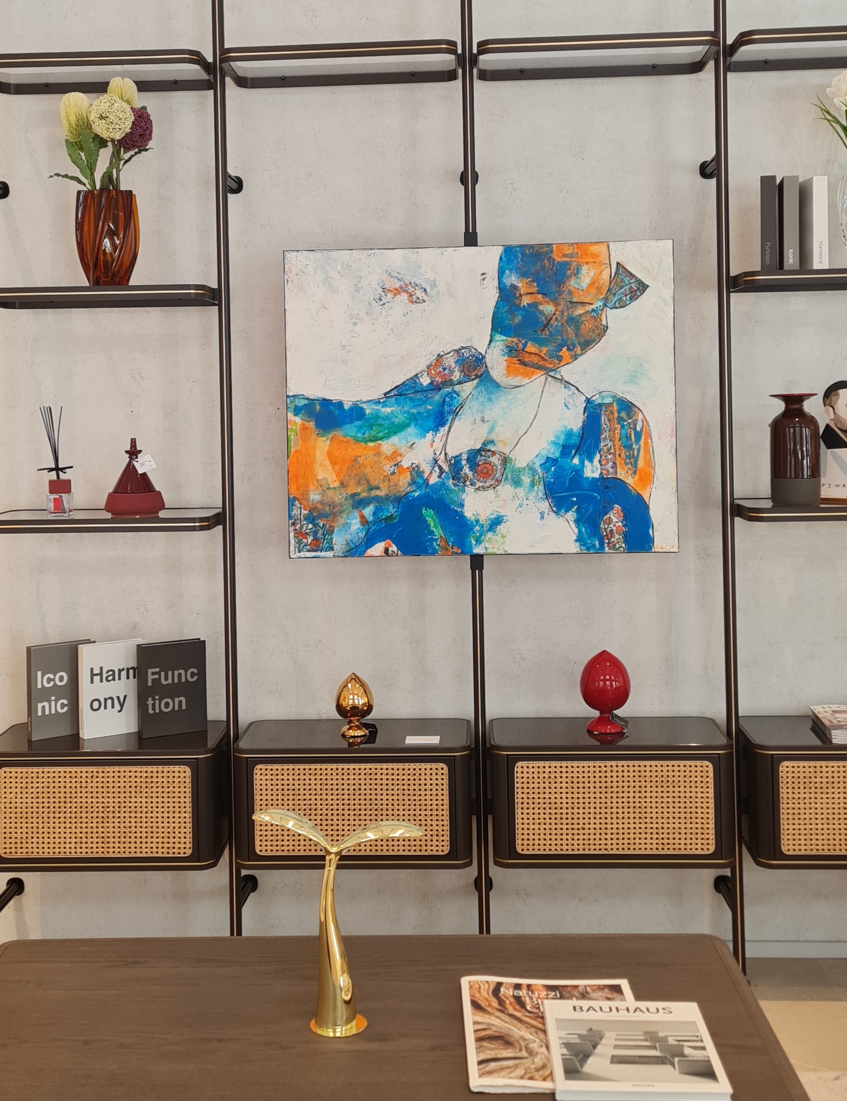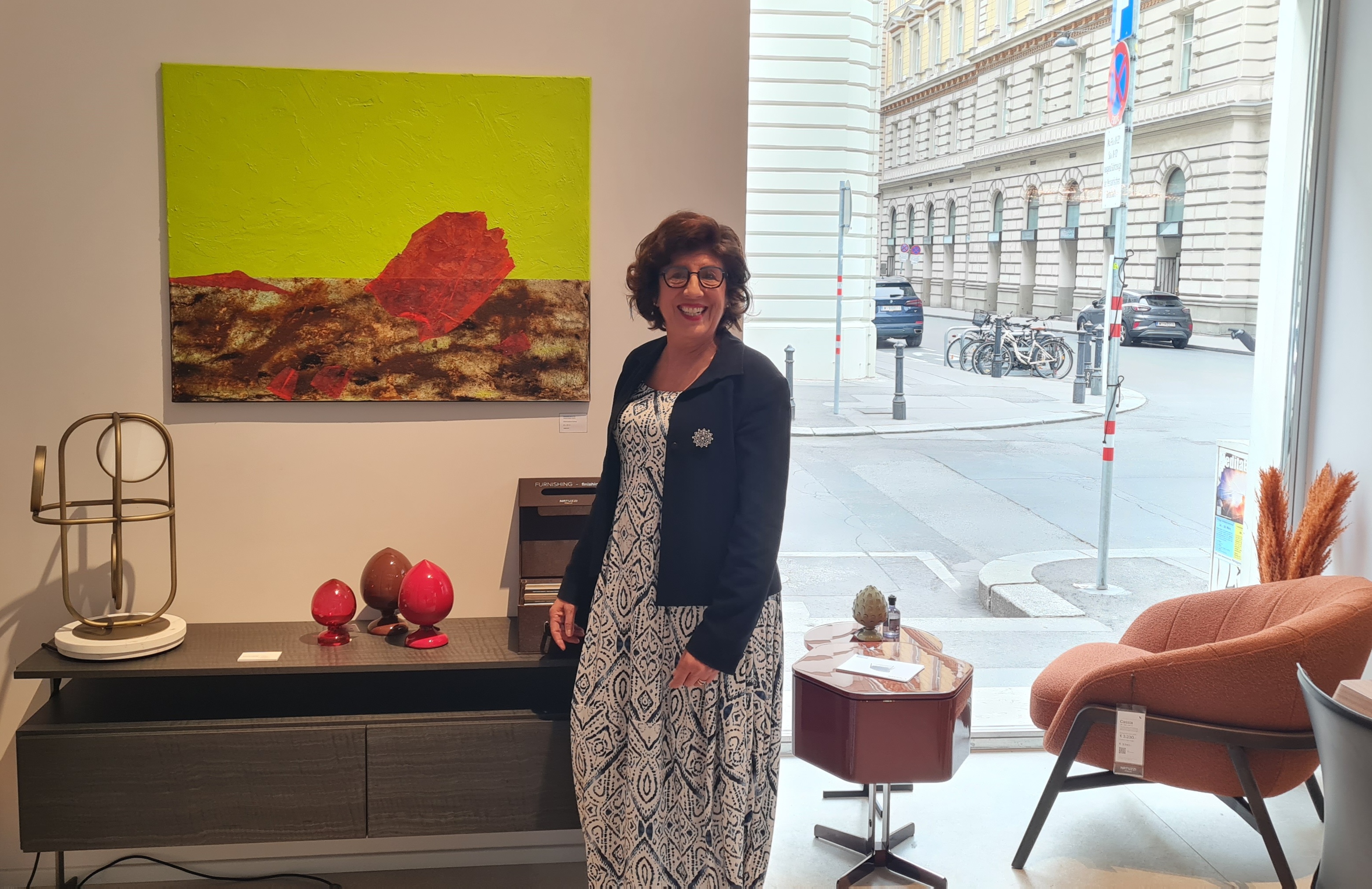 In April 2025, I had the pleasure of presenting a month‑long solo exhibition at the Natuzzi Austria showroom in the heart of Vienna, just steps away from the Opera. A wide selection of my works, especially pieces from Our Planet and Floating Thoughts, found a beautiful harmony with Natuzzi Italia’s elegant, meticulously crafted furniture. The space became a dialogue between art, design, and the values we share, particularly a deep respect for nature and sustainability.